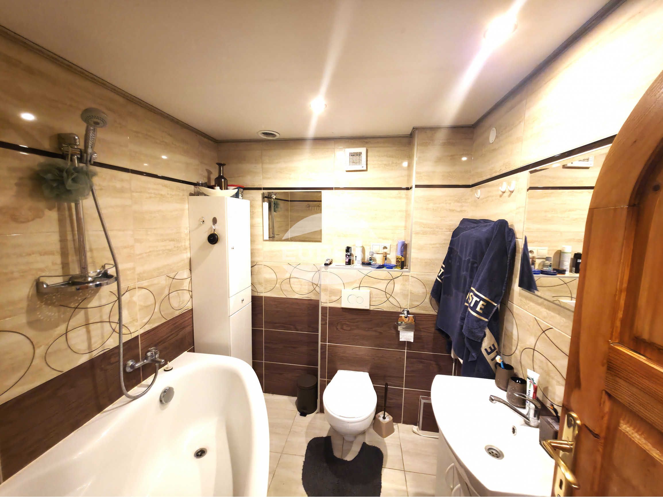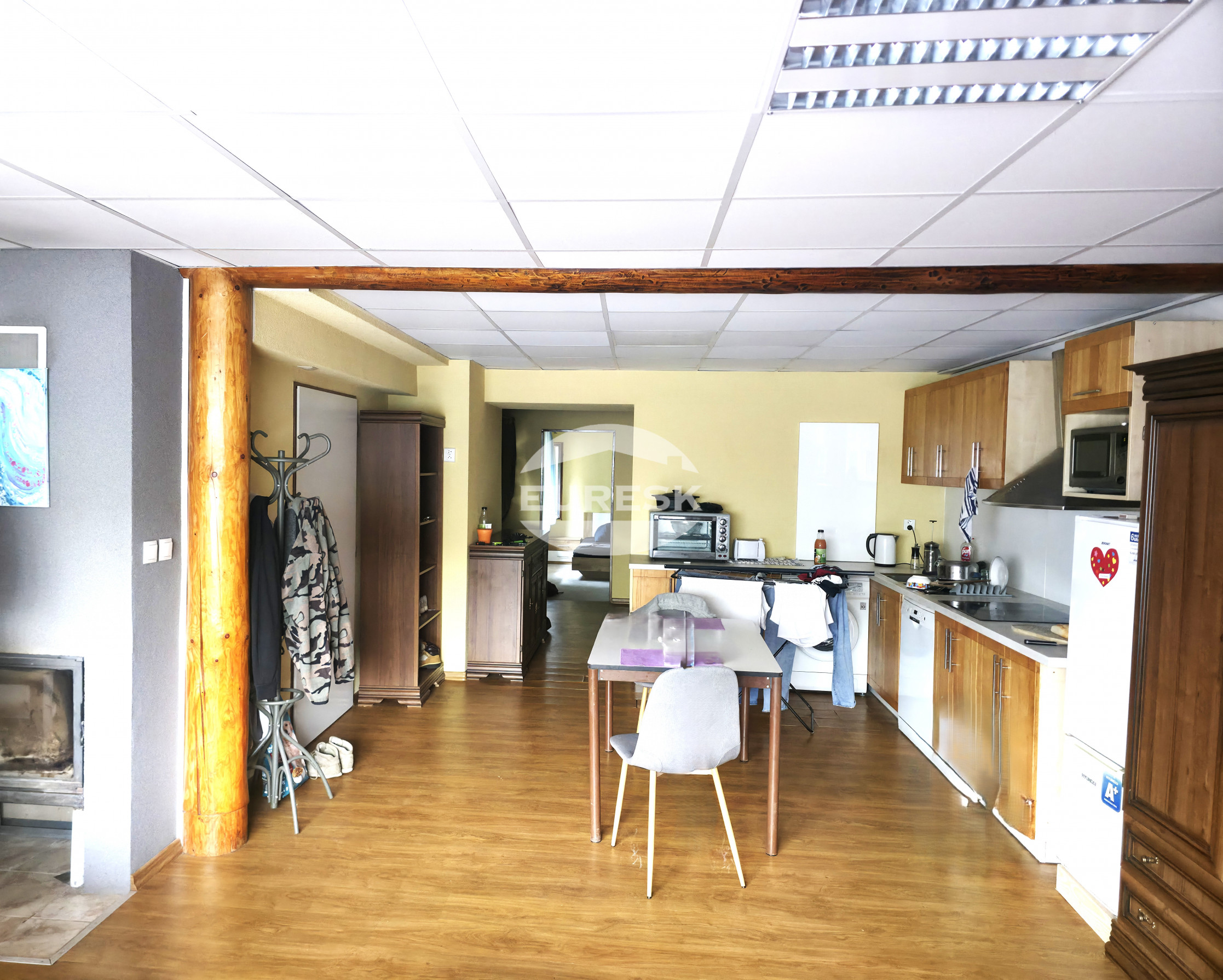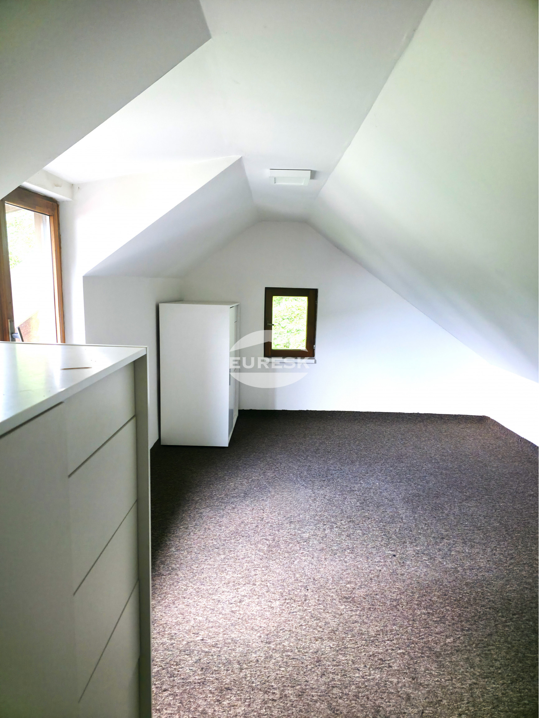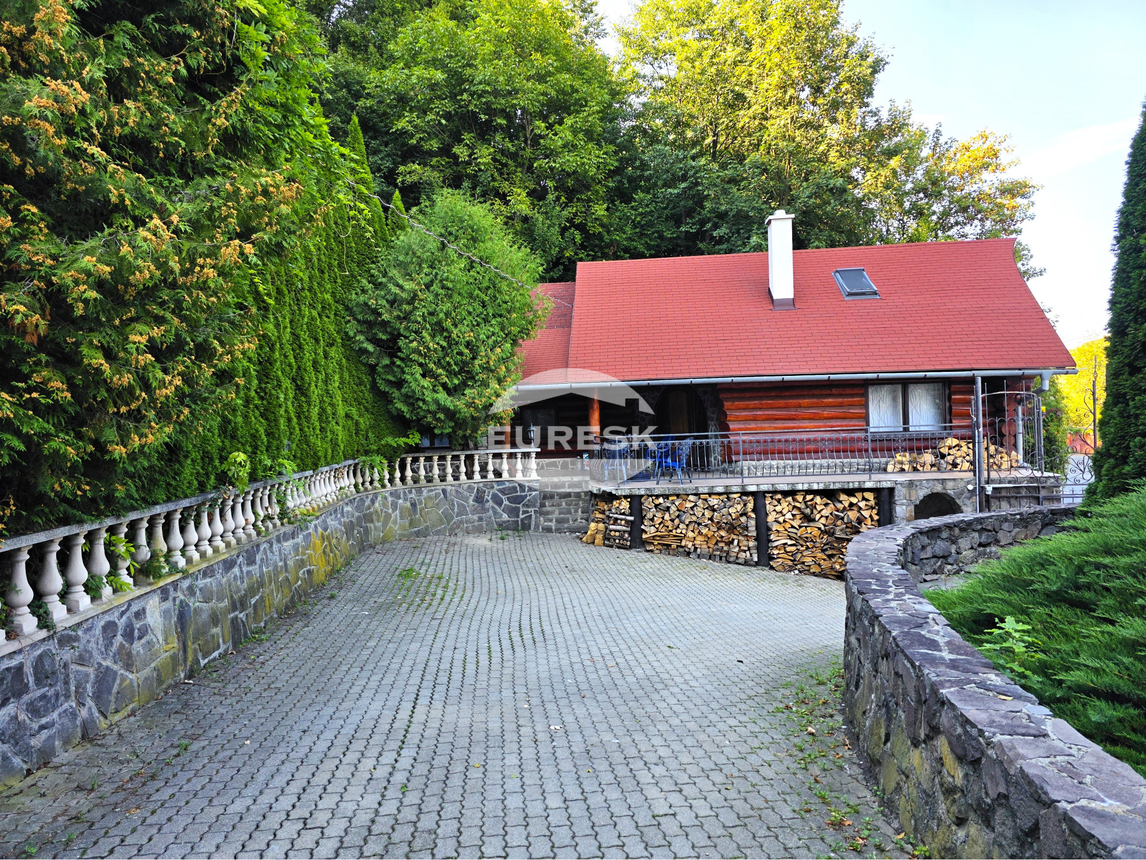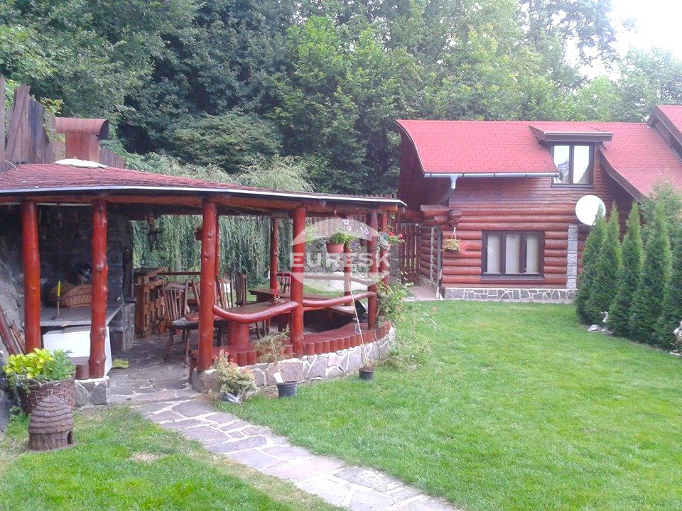 Na pozemku sa nachádza drevený zrub, rozdelený na dve samostatné bytové jednotky: