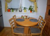 Kuchyňa je otvorená, vzdušná a vybavená rohovou kuchynskou linkou so zabudovanými spotrebičmi (sporák, umývačka riadu, chladnička), čo ocení každý, kto si potrpí na funkčné a estetické riešenia.