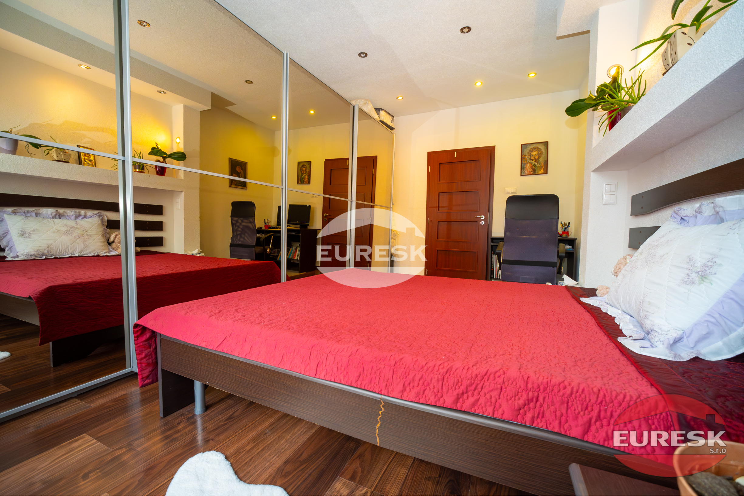 Nočná časť: Útulná spálňa a samostatná detská izba, ktorá môže slúžiť aj ako pracovňa.