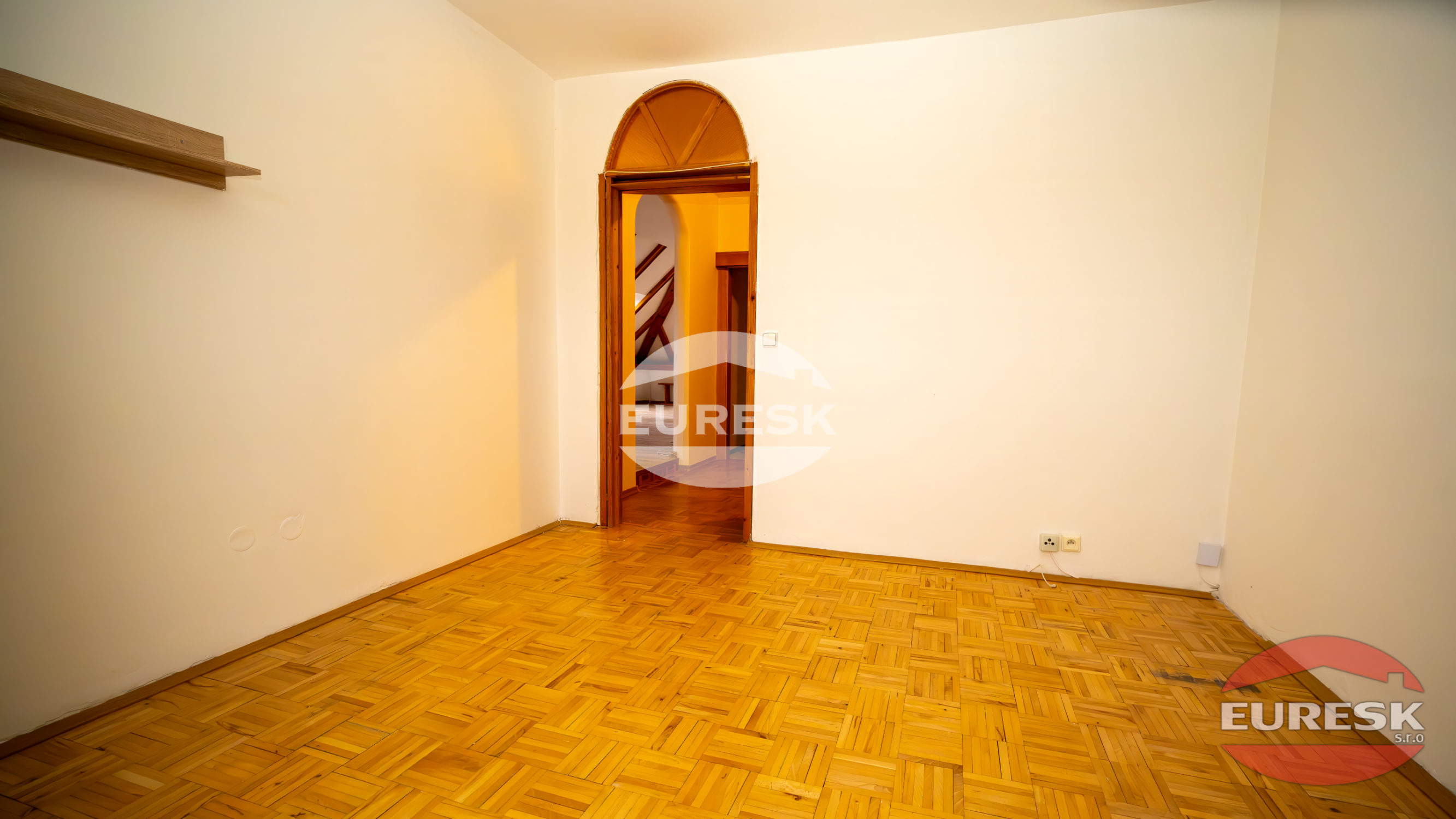Vstupná chodba, samostatné WC, kúpeľňa, kuchyňa s praktickou komorou, obývacia izba, spálňa a detská izba. K bytu patrí aj pivnica.