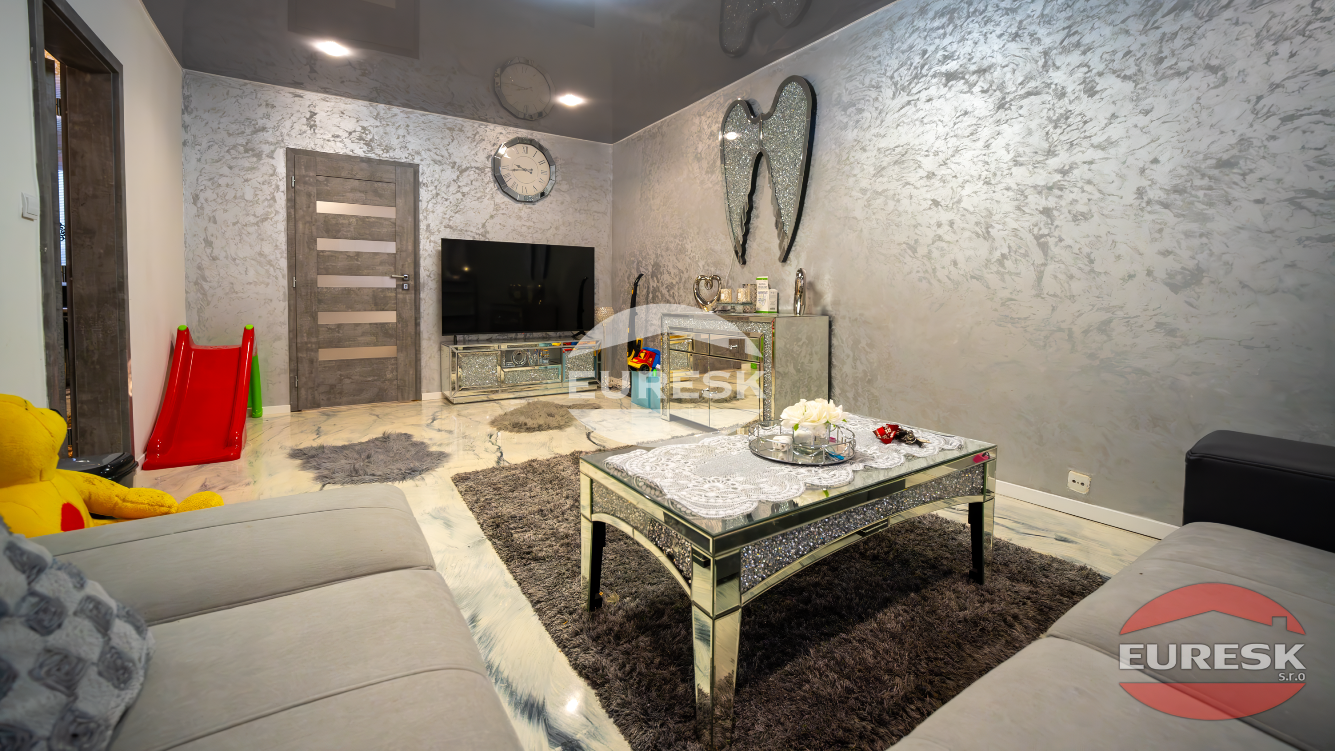 Nové elektrické rozvody (v rámci jadra), nové stierky a maľovky /benátsky štuk/, napínacie stropy z kvalitných materiálov