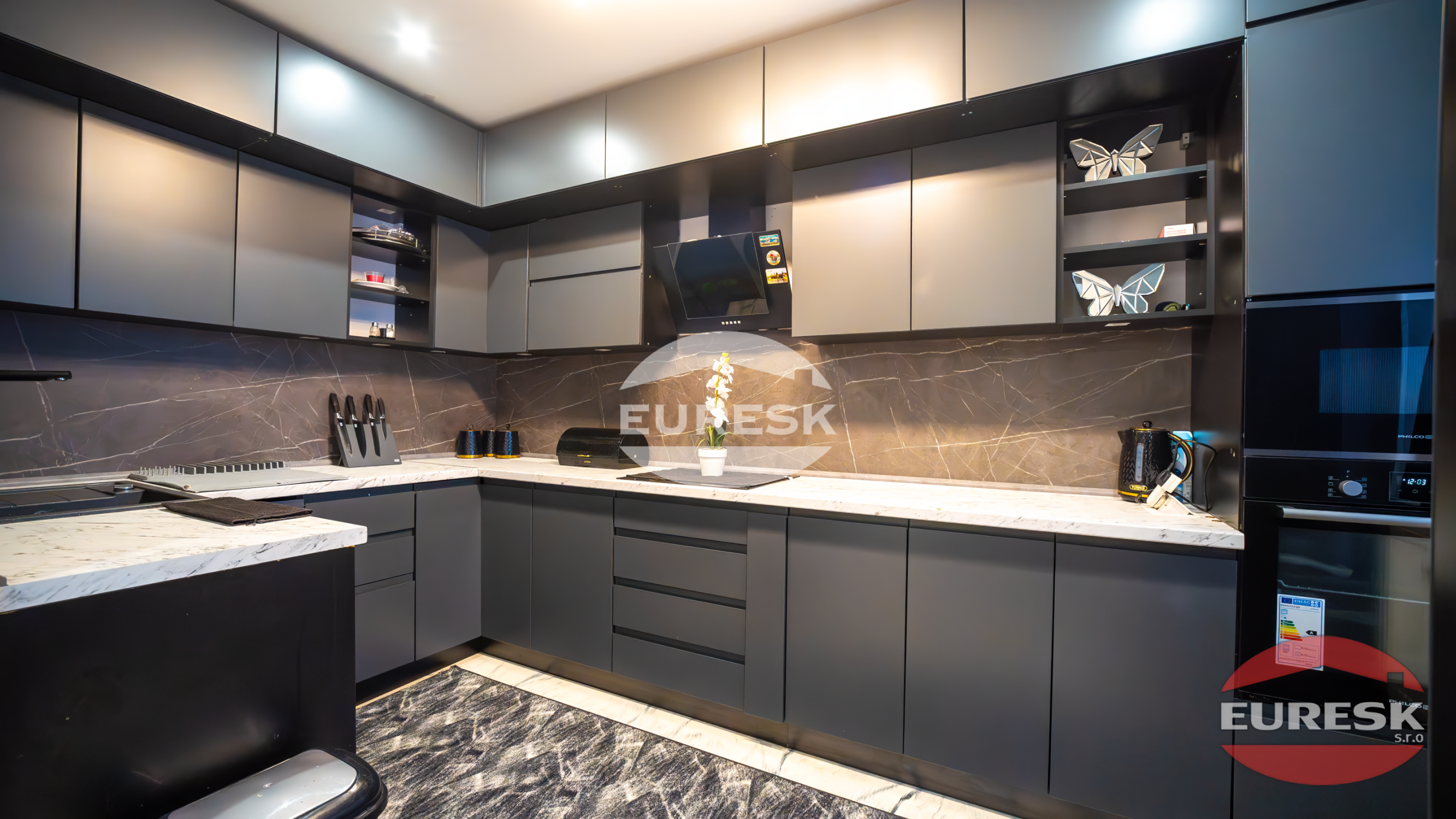 Kuchyňa: Moderná kuchynská linka vyrobená na mieru, vybavená zabudovanými spotrebičmi, ktoré uľahčia každodenný chod domácnosti.