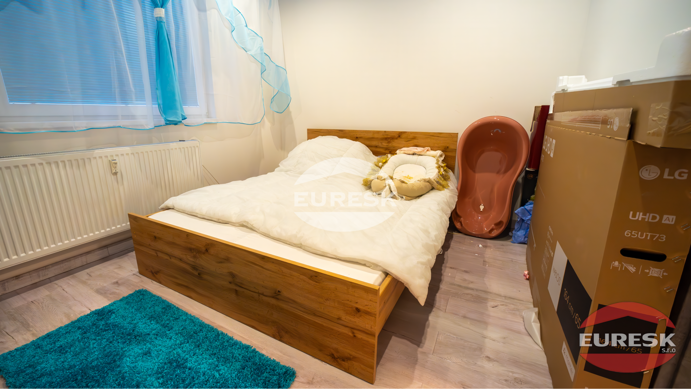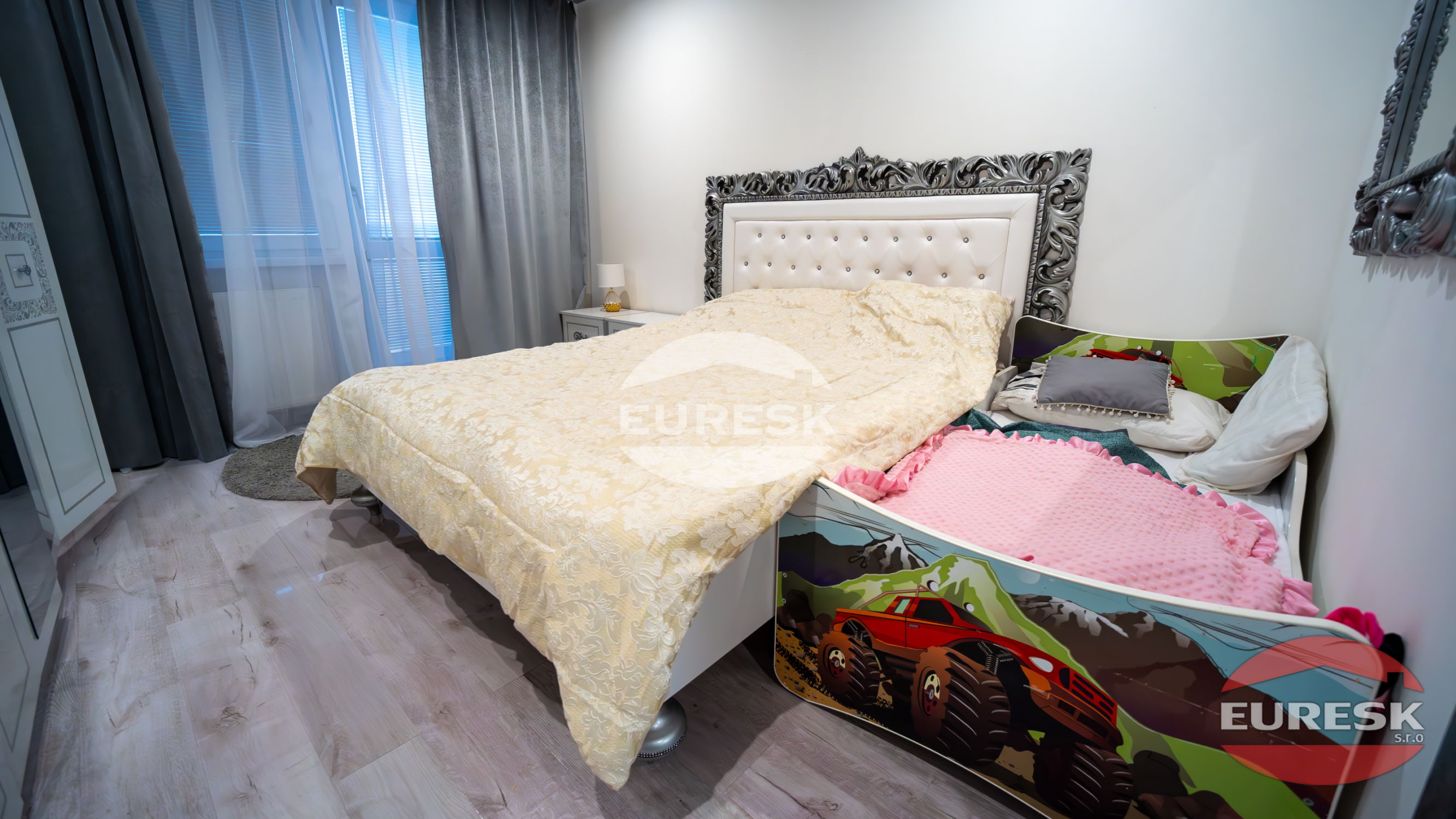 Izby: Komfortná spálňa a detská izba (prípadne pracovňa), obe s novými stierkami a podlahami.