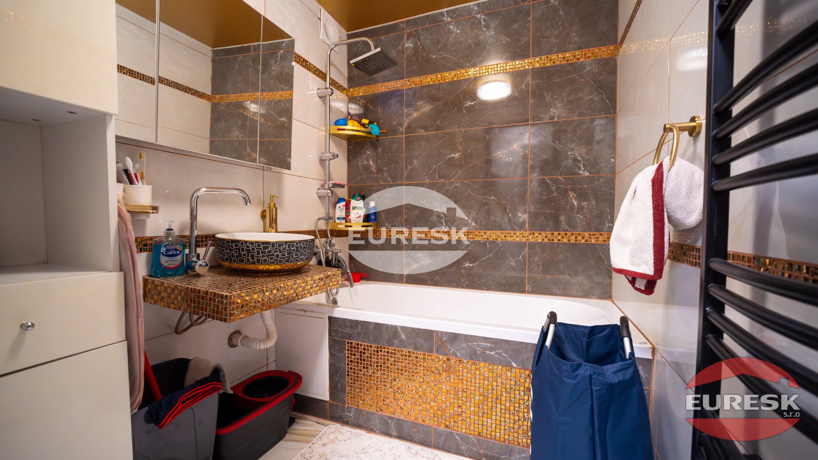 Úložné priestory: Byt disponuje priestrannými vstavanými skriňami, ktoré elegantne riešia odkladanie vecí bez narušenia priestoru.
